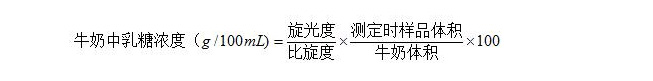 取50mL牛奶样品于100mL容量瓶中,加乙酸铅和亚铁氰化钾溶液、冰乙酸各2mL,摇匀后静置30min,用干燥滤纸过滤,弃去初滤液,测定其旋光度,记录数据。